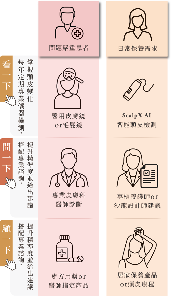 若您有明顯的頭皮問題,建議至醫療院所檢查。 若是一般頭皮困擾或好奇頭皮現況,則可至附近沙龍或百貨專櫃,就能透過專業的ScalpX AI頭皮檢測系統,診斷真實的髮肌狀況。